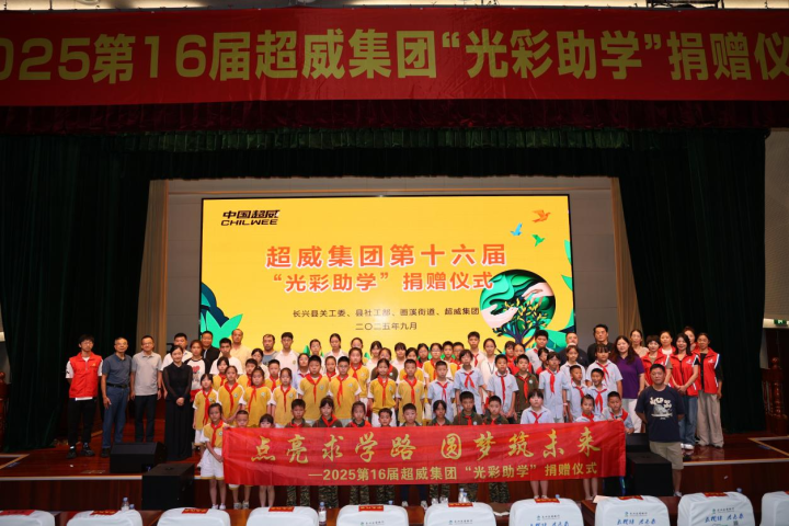 自2010年起,超威集团连续16年举办“光彩助学”活动,累计为1000余名贫困学生发放助学金400余万元。2022年8月,联合长兴县慈善总会,在对口支援地区四川省汶川县开展“光彩助学·圆梦大学”活动,成功帮助20名汶川县品学兼优的困难家庭子女圆梦大学。“光彩助学”已经成为长兴县乃至湖州市具有广泛影响力的公益助学品牌。